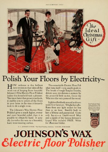 1925 Ad Christmas Tree Children Family Johnsons Wax Electric Floor Polisher Home - Original Print Ad Review