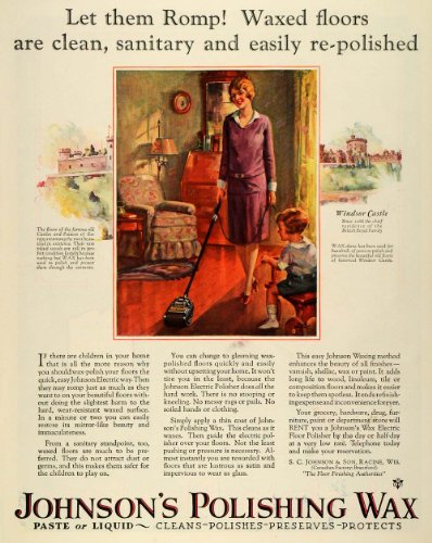 1927 Ad S C Johnson & Son Polishing Wax Housewife Floor Child Windsor Castle - Original Print Ad Feature